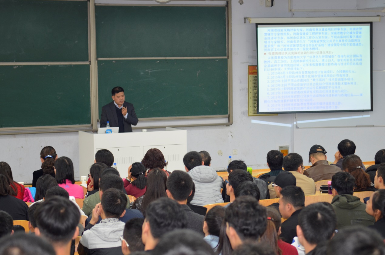 10月12日下午,信息工程系邀请郑州大学张震教授,在教学楼3110教室,为该系2017级200余名新生代表作了题为“云计算、大数据在我省的实践”专题讲座,为该系在大数据专业的建设上奠定了基础。学院副院长肖珑,科技开发处和信息工程系有关负责人及该系全体教师也一同听取了讲座。