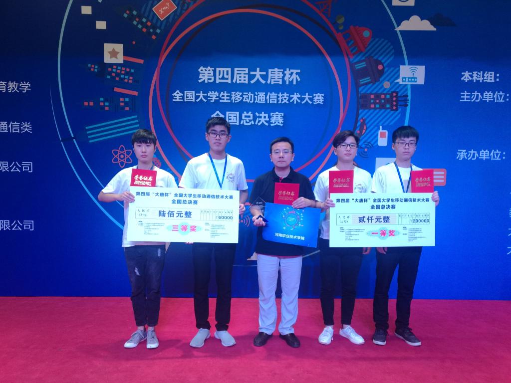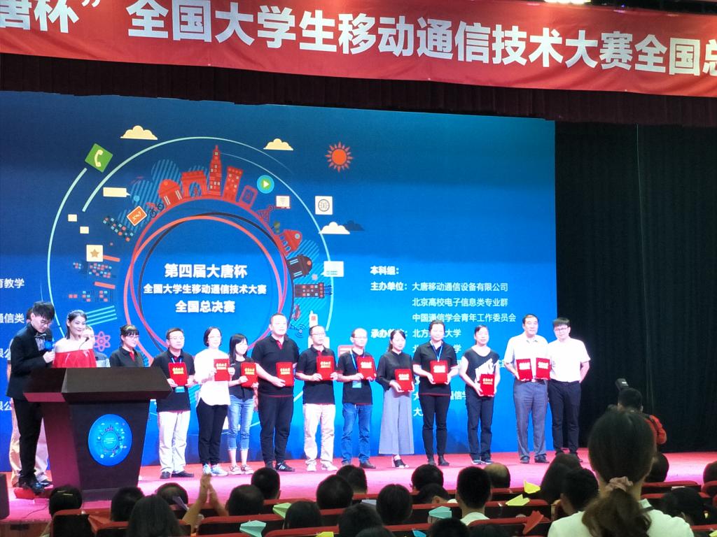 9月25日,2017年第四届“大唐杯”全国大学生移动通信技术大赛全国总决赛在北方工业大学落下帷幕,在来自26个省、300多所高校、800多名师生地激烈角逐下,我院电气工程系大唐移动通信学院选派的2015级学生张川川和李斌获全国总决赛一等奖,2016级学生李进和马乾雯获全国总决赛三等奖,指导教师李明参加本科、高职院校混合教师赛,获得全国总决赛二等奖。