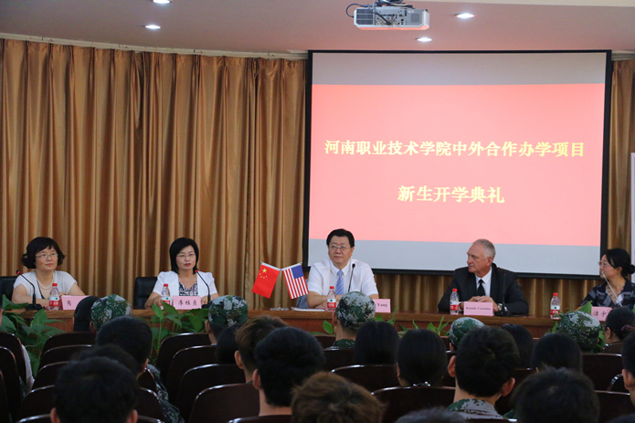 开学典礼上,李桂贞院长代表学院全体师生向136名中外合作办学新生表示热烈祝贺和诚挚欢迎,对不辞辛苦专程从万里之遥的美国到我院参加开学典礼的外方代表表示衷心的感谢,并介绍了学院的发展历史与基本情况。她希望与会同学要追求真善美,传播正能量,做一个勇于担当、向上向善的新时代大学生;要潜心学习理论知识,练就专业技能,弘扬工匠精神,为学院创建国家级优质高专作出应有的贡献;要养成好习惯,按时作息,积极锻炼,珍惜光阴,不负年华,努力让自己成为一个有宽广视野、有扎实学识、有深厚素养的大写的人。