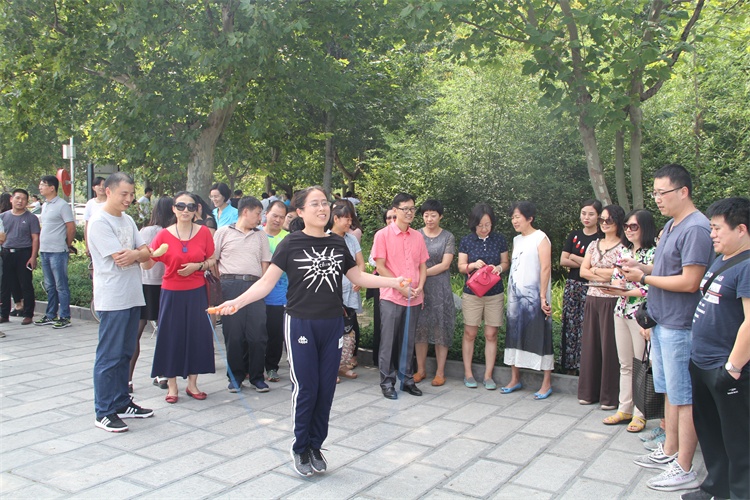 为丰富我院广大教职工的文化娱乐生活,促进学院发展与传统节日文化相融合,开展省级文明单位创建,9月14日下午,院工会在图书馆前广场举办了教职工迎中秋、国庆节跳绳比赛,17个分工会近700名教职工参加比赛。