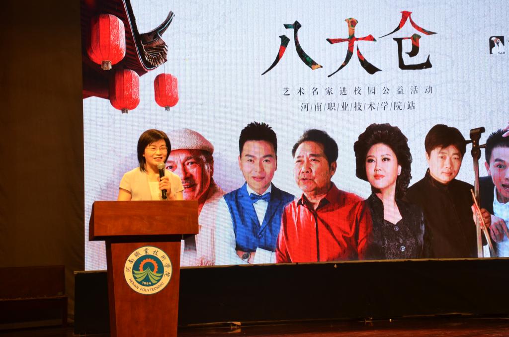 李桂贞院长在致辞中代表学院全体师生对各位艺术家的到来表示欢迎。她指出豫剧、曲剧两大剧种,有着浓郁的中原特色,高亢奔放的唱腔、舒展流畅的旋律,深受河南及全国戏曲观众的喜爱。各位艺术家来我院举办艺术名家进校园公益活动,必将对大学生弘扬优秀民族文化、感受艺术魅力、提高艺术素养、促进全面发展起到巨大的推动作用。