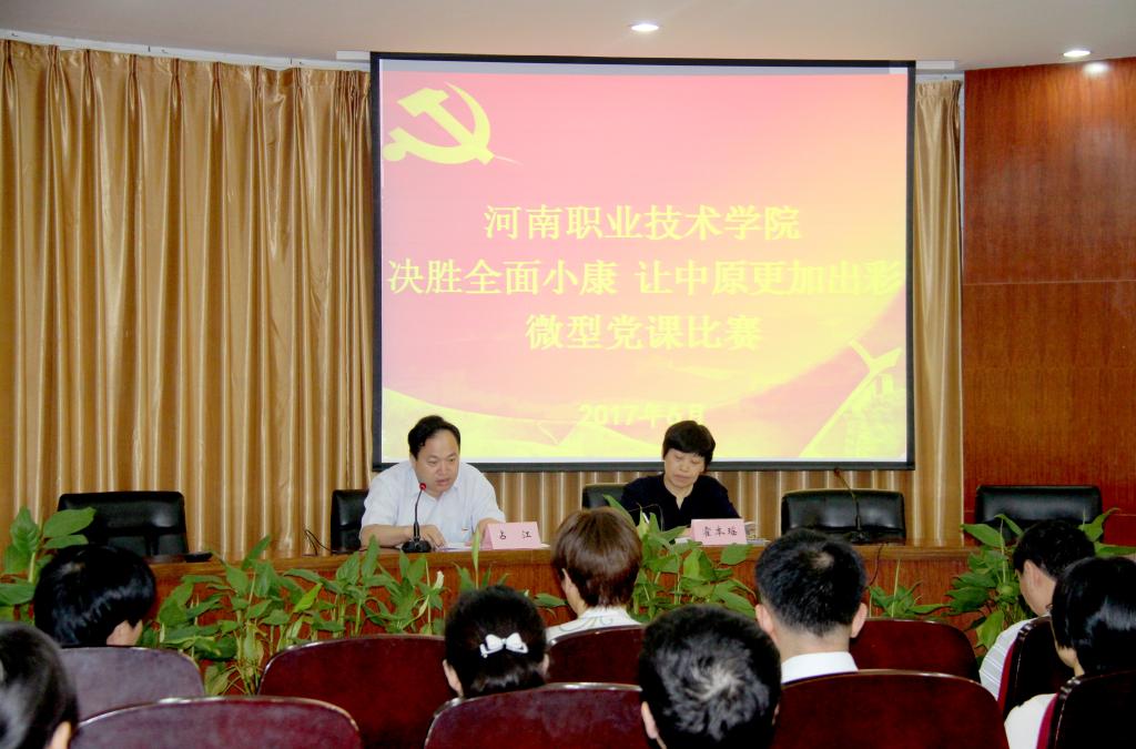 决赛邀请到了宣传部部长孙留欣、纪委副书记夏喜利、思想政治理论教学部主任王黎明、信息工程系党总支书记李明玉、电气工程系党总支书记梁杰等5名专家作为评委。决赛现场,各参赛选手紧扣时代脉搏,结合部门实际,灵活运用多媒体课件,以视频、动漫、音频、图片等形式展现活动主题,用生动、鲜活、形象的革命故事、历史故事、典型事迹阐述党员风采,富有感染力和吸引力。经过激烈角逐,电气工程系武漫漫老师、信息工程系曾丽娟老师和附属技校吕晔林老师分获前三名。至此,我院“决胜全面小康让中原更加出彩”微型党课比赛胜利落下帷幕。