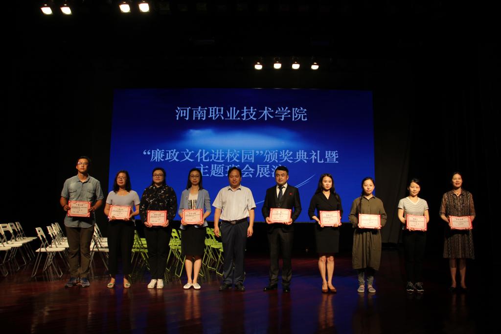 6月8日下午,我院在音乐厅举行“廉政文化进校园”活动颁奖典礼暨主题班会展演大会。院党委副书记、纪委书记占江出席并讲话。纪检监察室、学工部和团委负责人,各系(院)党总支书记、副书记,以及全体辅导员和学生代表共600余人参加了活动。