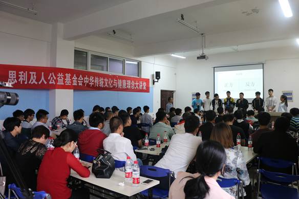 授课活动上,胡蔓娜讲师从走进中华传统文化、思利及人是李锦记的核心价值观、思利及人的起源和思利及人等四个方面为学生展示了优厚的企业文化,教育同学们做人做事要学会运用直升机思维、学会换位思考并注重关注对方感受。许权讲师从年轻人为什么要养生和年轻人如何养生两个方面,引导同学们养生要注重饮食、起居、运动和情志,打造健康人生,更好地为社会服务。授课过程中还穿插了游戏和互动环节,同学们热情高涨,气氛热烈。