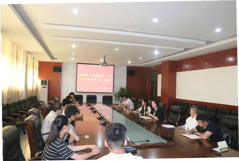 5月9日下午,我院2016级“技能拔尖人才”免试录取学生座谈会在行政楼A303会议室举行。招生就业处负责人,教务处、学生处相关工作人员和2016级通过免试录取的9名学生及辅导员共16人参加了座谈会。