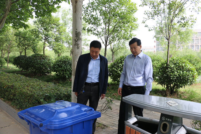 5月5日上午,学院党委书记李四清和工会主席邵芙蓉,在党政办、宣传部、学工部、团委、后勤管理处、保卫处、基本建设处和经管办等文明办有关成员单位负责人的陪同下,实地查看了校园环境和文明创建氛围,并进行了现场办公。