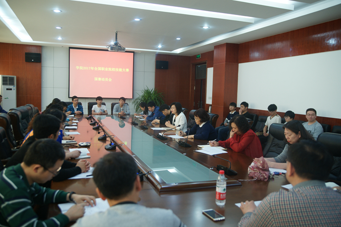 5月4日下午,我院在行政楼A303会议室召开2017年全国职业院校技能大赛国赛动员会。院长李桂贞出席会议并讲话。学院相关部门负责人和参赛项目带队领导、指导教师、参赛选手共48人参会。会议由副院长肖珑主持。