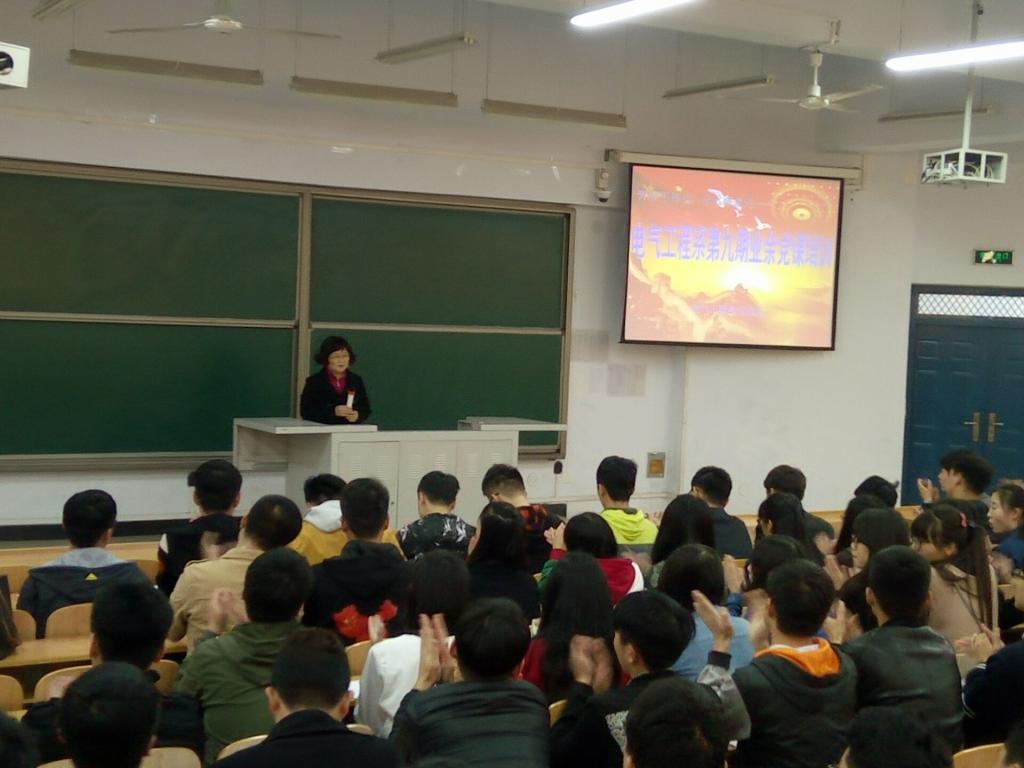 4月10日中午,副院长肖珑应邀为电气工程系第九期入党积极分子培训班做专题讲座。该系相关负责同志、全体辅导员和本期培训班的117名学员听取了讲座。