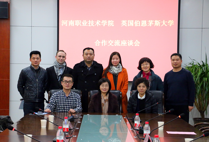 1月4日上午,英国伯恩茅斯大学国际合作部负责人逯阳博士一行六人来访我院。院长李桂贞和副院长肖珑会见来访客人。合作交流座谈会在行政楼A303会议室举行。合作办学处、党政办等相关部门负责人一同参加了座谈会。