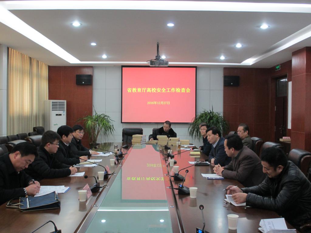 12月27日上午,省教育厅高校安全工作检查组一行4人,来我院检查2016年安全管理工作。汇报会在行政楼A303会议室召开,党委书记李四清和副院长占江与会,院属相关部门负责人参加了汇报会。汇报会由副院长占江主持。