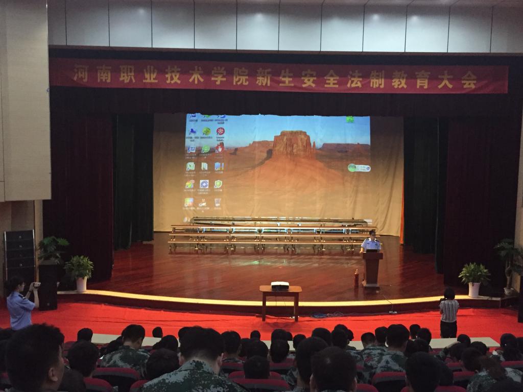 为进一步普及消防安全知识,增强学生的法制观念和安全意识,9月13日下午,学工部协同保卫处邀请郑州市消防支队义务宣讲团刘亚楠教员和郑州市龙子湖公安分局贾伟警官,为我院新生分别作了消防安全知识讲座和安全法制教育讲座。全体新生辅导员老师和600余名新生代表听取了讲座。