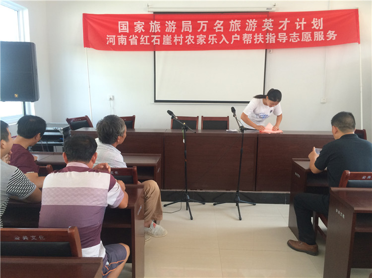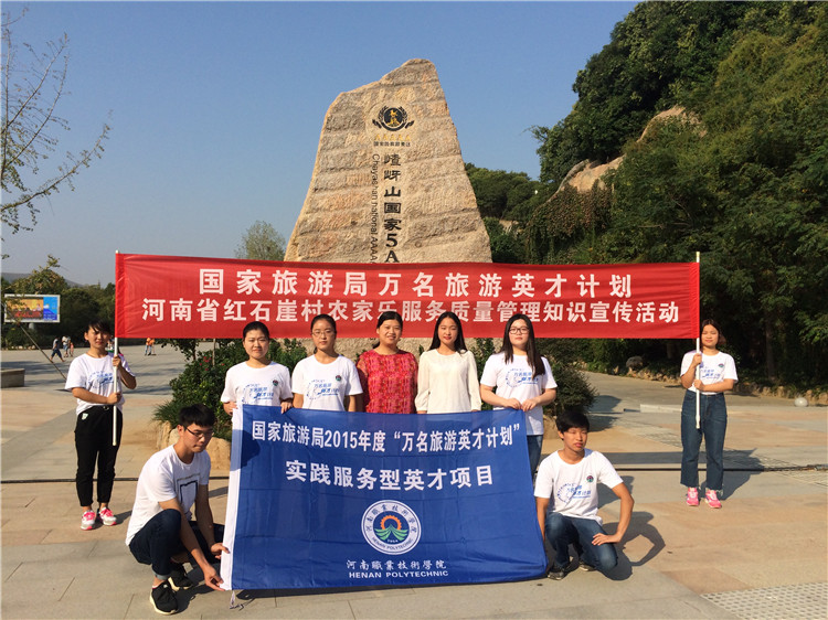 9月7日至11日,由旅游管理系承接的国家旅游局“万名旅游英才计划”之实践服务型英才培养项目组的20余名师生,深入到遂平县红石崖村开展为期五天的志愿服务系列活动。项目组同学热情周到的服务态度和扎实的专业知识受到红石崖村干部群众的一致好评。
