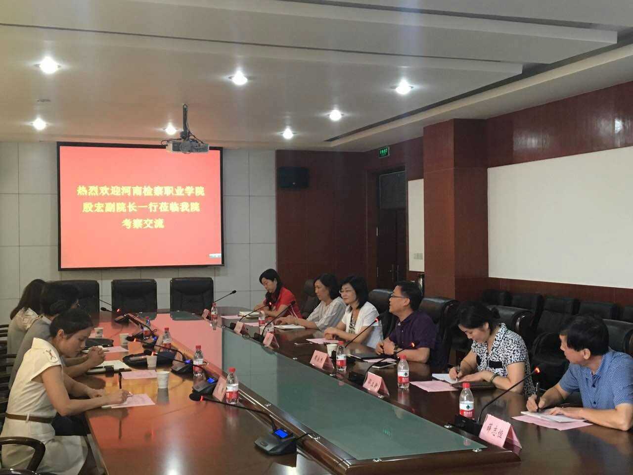 8月26日,河南检察职业学院副院长殷宏一行4人来我院考察交流。院长李桂贞和教务处相关人员热情接待了来访客人,并进行了座谈。