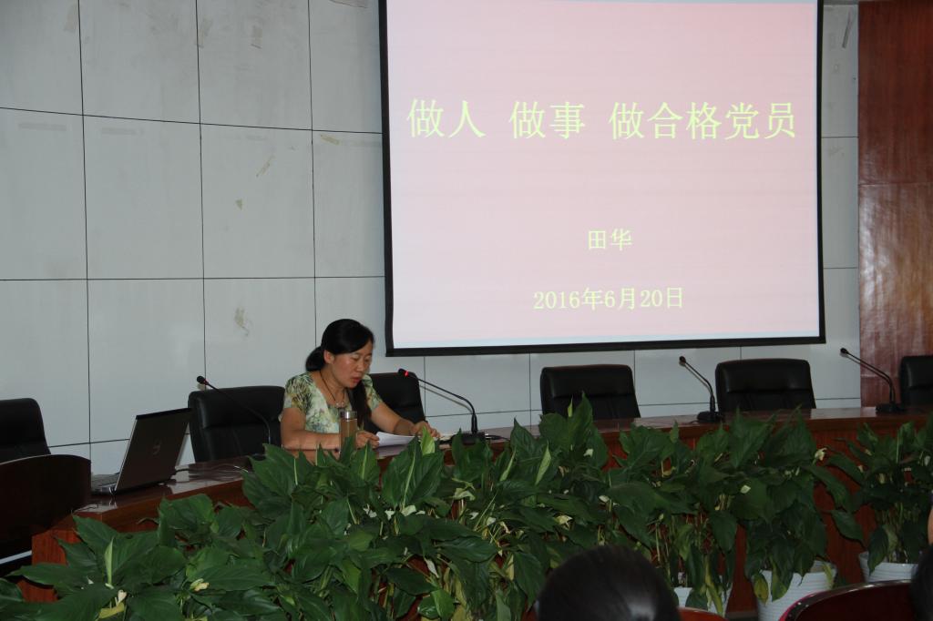 6月20日下午,副院长田华为人事处、后勤处、旅游管理系和烹饪食品系等所分管部门的87名师生党员,作了以“做人、做事、做合格党员”为主题的“两学一做”专题党课。