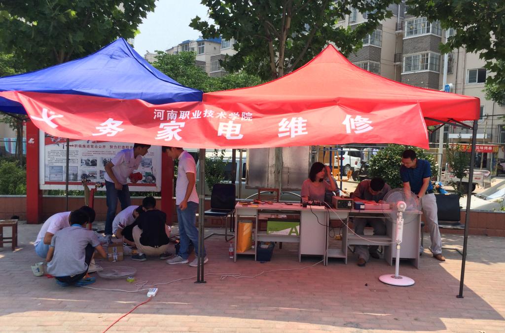6月19日,我院教师党员志愿者和学生志愿者共10人在团委负责人朱永宽的带领下,赴精神文明建设结对帮扶单位龙子湖街道办事处夏庄社区开展“义务家电维修”志愿服务。