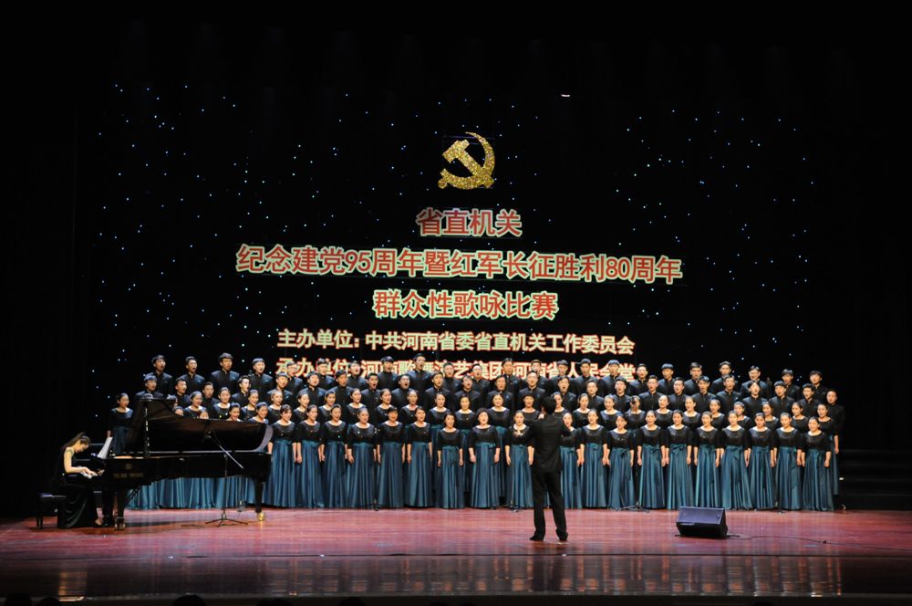 6月3日下午,由中共河南省委省直机关工作委员会主办的“纪念建党95周年暨红军长征胜利80周年”群众性歌咏比赛在河南省人民会堂隆重举办。我院音乐学院合唱团代表省人社厅参加比赛并荣获一等奖。