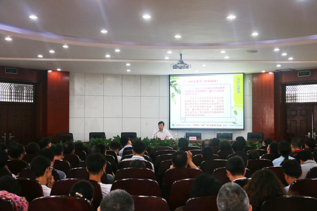 李四清书记强调,深入学习贯彻习近平总书记系列重要讲话精神,对于进一步加快学院各项事业发展、实现学院“十三五”建设目标,具有重大的现实意义和深远的历史意义。深入学习贯彻系列讲话精神是我们坚定理想信念、统一思想行动的前提基础,是我们清醒认识形势、明确努力方向的现实需要,是我们应对困难挑战、赢得主动优势的内在要求。我们要充分认识,高度重视,切实增强学习贯彻的自觉性。学习要突出重点,既要把握核心要义又要领会思想精髓,一是认真学习领会关于坚持和发展中国特色社会主义的重要论述,坚定道路自信、理论自信、制度自信;二是认真学习领会关于实现中华民族伟大复兴的中国梦的重要论述,为国家富强、民族振兴、生活幸福而不懈奋斗;三是认真学习领会关于全面深化改革开放的重要论述,激发发展动力和创造活力;四是认真学习领会关于新发展理念的重要论述,以五大发展理念武装头脑,更新发展理念思路;五是认真学习领会关于加强改进高校党建工作的重要论述,奠定科学管理的思想和理论基础;六是认真学习领会关于思想教育工作的重要论述,牢牢掌握意识形态工作的领导权和话语权;七是认真学习领会关于全面依法治国的重要论述,坚持依法治教、依法治院;八是认真学习领会关于全面从严治党的重要论述,真正摈弃侥幸心理。要坚持真学真懂真信真用真抓真改,用系列讲话精神武装头脑、指导实践、推动工作,做到学以致用。