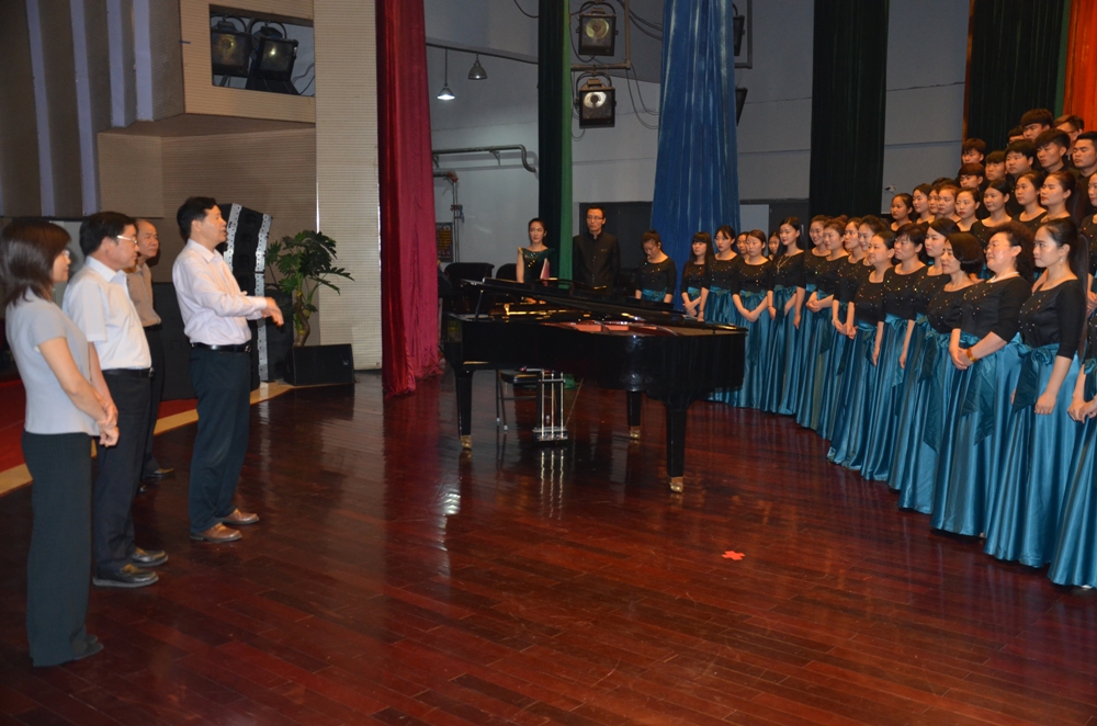 6月2日下午,省人力资源和社会保障厅副厅长郭成全和机关党委书记白杨林,在党委书记李四清、院长李桂贞和副院长占江及党政办负责人的陪同下,指导检查了“纪念建党95周年暨红军长征胜利80周年”合唱团排演工作。