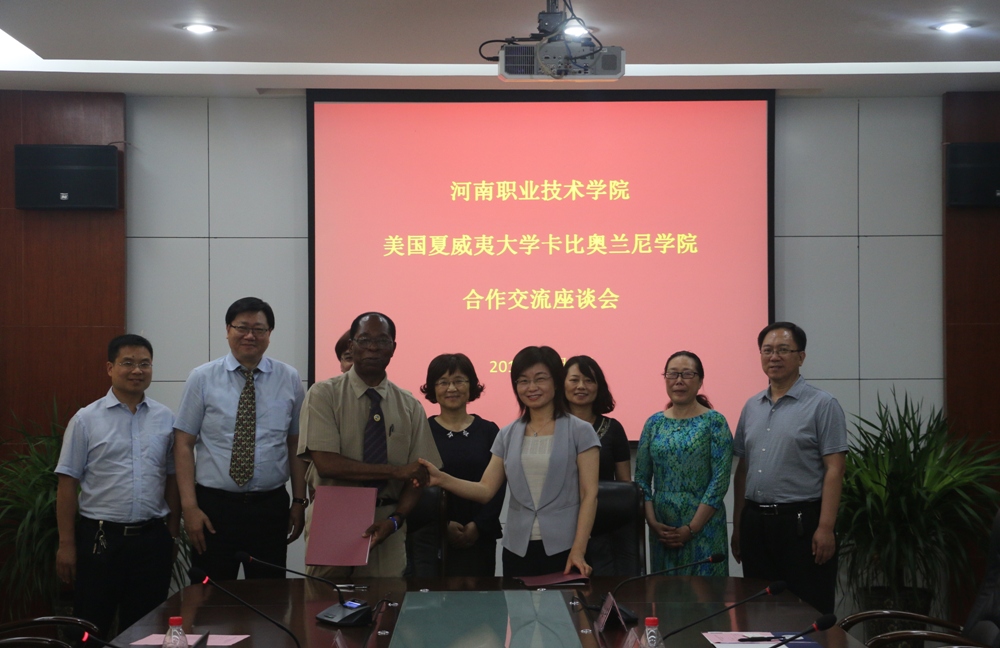 6月1日下午,美国夏威夷大学卡比奥拉尼学院院长Leon博士、国际部主任Cy Feng在泰尔弗教育集团董事局主席杨柏先生陪同下到访我院,双方签署合作备忘录,计划在会计、数字媒体和旅游管理等专业开展合作与交流。学院院长李桂贞和副院长肖珑接见到访客人。合作办学处、工商管理系、旅游管理系和环境艺术工程系等相关部门负责人参加了座谈会。