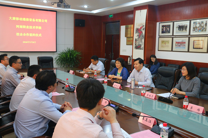 5月6日下午,我院与大唐移动通信设备有限公司签订校企共建“河南职业技术学院大唐移动通信学院分院”。大唐移动通信设备有限公司副总经理张敏等,党委书记李四清、院长李桂贞和副院长肖珑出席签约仪式。合作办学处和电气工程系相关领导参加了签约仪式。签约仪式由副院长肖珑主持。