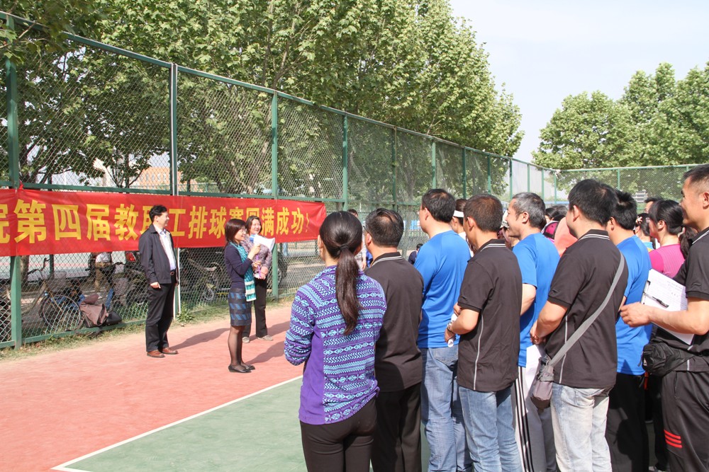 4月21日下,我院第四届教职工排球赛在排球场如期举行。院党委书记李四清、院长李桂贞和工会主席邵芙蓉出席开赛仪式,党政办主任王皓和人事处处长李玉峰陪同参加。仪式由工会主席邵芙蓉主持。