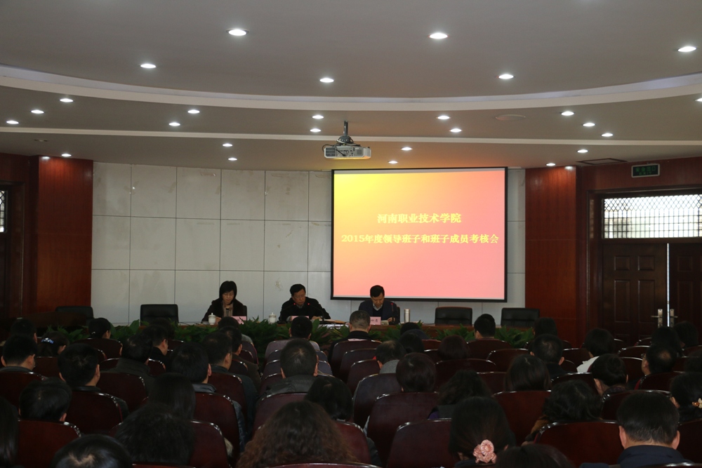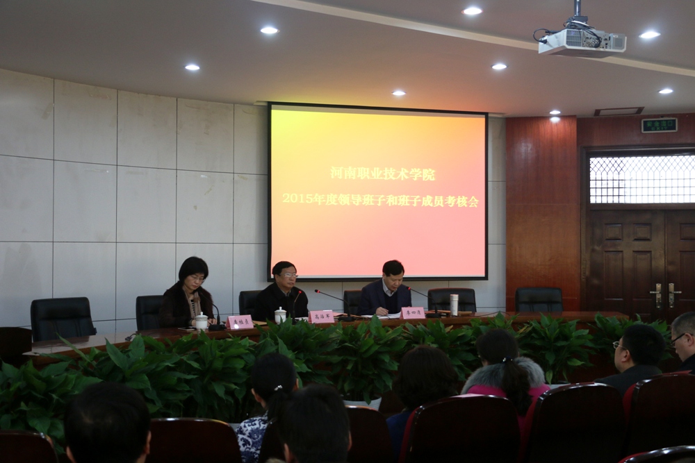 3月9日下午,我院召开了2015年度领导班子和领导干部考核会议。考核组组长、省委高校工委组织干部处处长高治军同志,省委组织部科教企业干部处干部郑常青同志,河南工程学院副处级纪检监察员李啸风同志,省教育厅人事处主任科员刘霞同志和省人社厅人事处副处长袁丽敏同志出席了会议。院领导、中层干部、高级职称及享受国务院政府津贴专家、教师代表和学生代表等参加了会议。会议由院党委书记李四清主持。