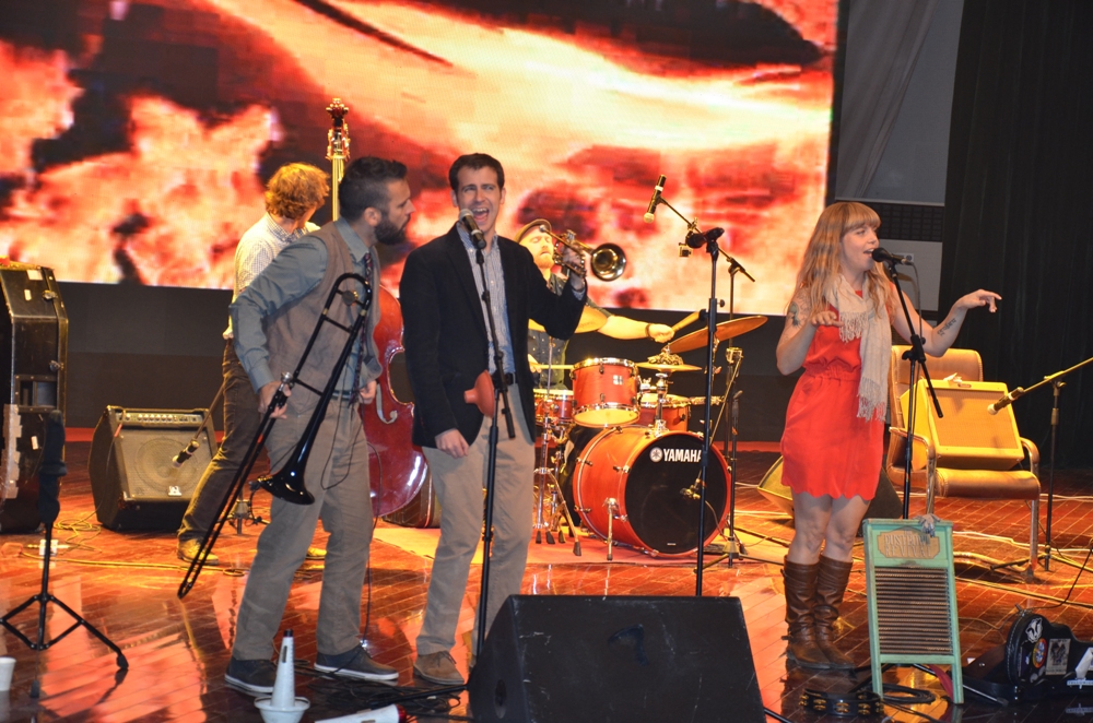 11月11日晚,美国著名尘暴乐队一行17人来我院进行专业艺术交流演出。此次活动由省文化厅主办,音乐学院和河南省玉卿戏曲音乐艺术研究院承办。省文化厅副厅长康洁,学院院长李四清、副院长彭志宏和占江,以及院属单位领导、音乐学院师生共计600余名一同观看了演出。