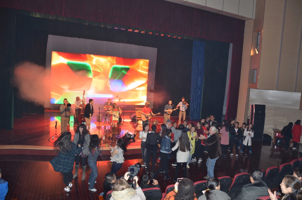 演出现场,乡村音乐、爵士、蓝调等不同类型的激情经典曲目,让现场观众听得如痴如醉,翩翩起舞,同时也为音乐学院师生呈上了一堂精彩的舞台专业表演实践指导课。尤其经改编的中国歌曲《月亮代表我的心》、《传奇》等乐曲,达到东西方文化在音乐中完美融合,将整场音乐会推向高潮,掌声和欢呼声此起彼伏。