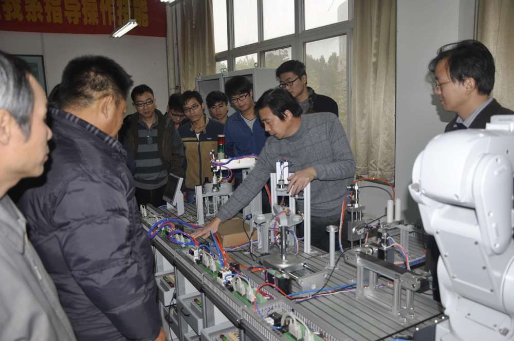 讲座和现场指导中,姚宝玉技师结合自己生产一线工作经验,详细讲解了如何设计贴近行业一线,增强其实用性的电气自动化技术专业和建筑电气工程技术专业实训课实训项目,并在电气控制实训室现场指导师生进行电气控制线路安装、工艺设计和工时定额制定。郭建庄工程师通过视频演示,介绍了电子产品检验及工艺技术标准要求,并对电子信息工程技术专业和移动通信技术专业的实训课程的设计提出了指导性建议。