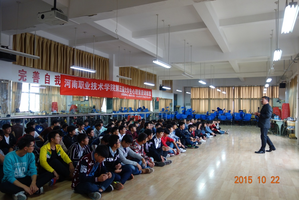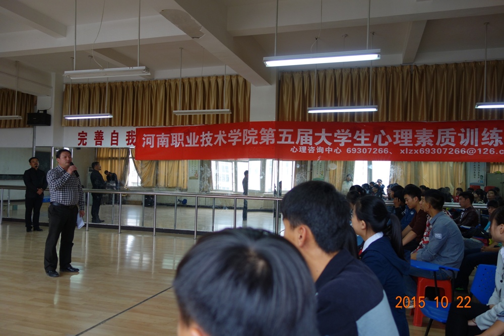 10月22日下午,思政部心理咨询中心举办了第五届大学生心理素质训练营活动。100余名学生干部代表参加活动。活动邀请河南省泰杰斯教育培训集团首席心理素质培训师王喜霏和张涛作为指导教师。