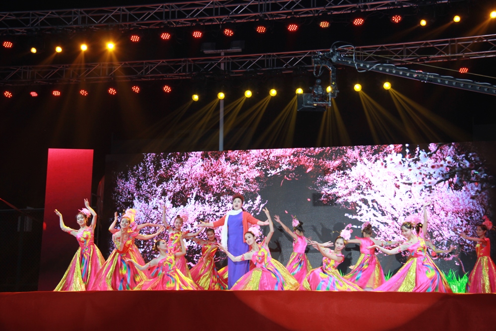 晚会开始前,大屏幕上播放着新生入校和军训的精彩瞬间,仿佛时间倒流,让同学们重拾初入校门的激动和军训的点点滴滴。晚会在热情奔放的现代舞中拉开帷幕,相声《三好学生》、《大学那些事儿》、音乐剧《我们分手吧》的幽默诙谐引得观众捧腹大笑;歌舞表演《梨花颂》、《不能忘却的记忆》、《问春》等让同学们如痴如醉;音乐学院雷红薇教授的《绣红旗》、《红梅赞》,国家一级演员江团结的《天职》把整场晚会带到了高潮。本次活动还邀请到我院音乐学院远程本科学生河南电视台梨园春擂主白军选为我们激情献唱,尽展豫剧风采。最后,晚会在歌舞表演《永远跟党走》的优美旋律中圆满结束。