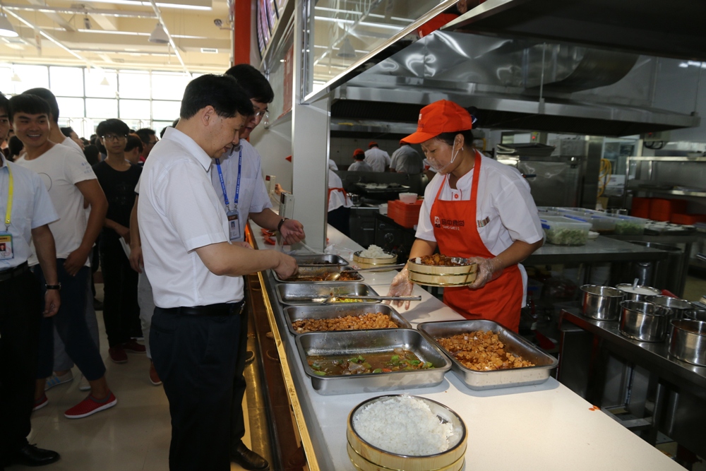检查中,院领导听取了餐饮管理公司负责人介绍餐饮情况,深入到餐厅操作间、洗消间、贮藏室及学生售饭窗口,全面查访卫生安全情况,饭菜的烹制、价格和种类,餐具的消毒,以及食品留样制度及用餐环境等。院领导与同学们一起就餐,仔细询问了同学们对就餐环境、饭菜价格、服务质量等满意程度。院党委书记王长钦对学院饮食工作及引入集团化、标准化管理的经营模式给予了充分肯定。院长李四清反复叮嘱饮食管理人员,要牢固树立为师生服务的思想,搞好食品卫生安全,确保食堂饭菜质量和价格稳定。后勤处表示,将加强食品质量和卫生安全监管,为学院师生提供优质安全的餐饮服务。