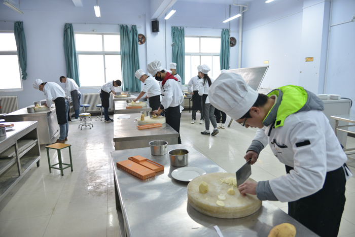12月18日下午,烹饪食品系第三届基本功专业技能比赛在系实训中心正式拉开帷幕,共有100余名学生参加了中式刀工、西式刀工、翻锅、拉面等四个项目的比赛。