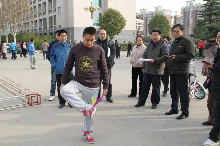 为活跃教职工业余文化生活,提高教职工锻炼身体意识,12月11日下午,虽是大雪时节,依然是阳光明媚,院工会在图书馆广场前举办了2014年教职工踢毽球比赛,来自17个分工会的700多名教职工参加了比赛。