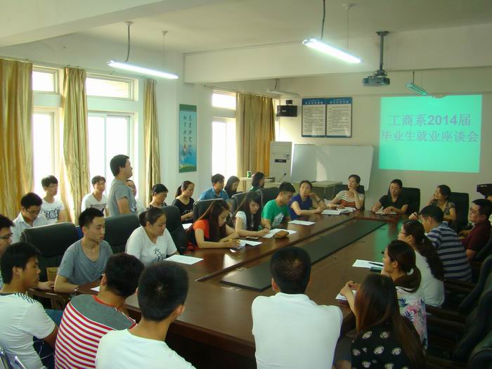 6月10日下午,工商管理系在综合楼410教室召开了2014届毕业生就业座谈会,并邀请了招生就业处张琳处长和温宗和老师参会就业思想指导。系领导班子、教师代表、毕业班辅导员和2014届27名毕业生代表参加了会议。会议由系党总支部书记李相勤主持。