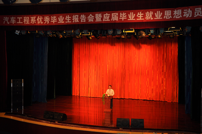 5月20日下午,汽车工程系2014年优秀毕业生报告会和毕业生思想动员会在学院音乐厅举行。副院长占江出席会议并做就业思想动员讲话。招生就业处处长张琳,学生处负责人鲁冬和团委负责人朱永宽,以及各系党总支书记、副书记、优秀毕业生代表和家长代表应邀出席。系党政领导、部分教师、辅导员及2012级学生参加了会议。会议由系党总支副书记李娟主持。