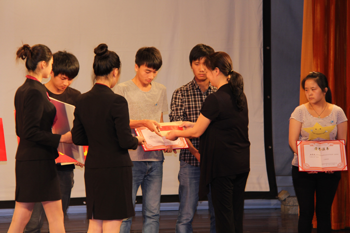 下午2点,颁奖典礼伴随着青春洋溢的大型舞蹈《站在长征起点》拉开帷幕。由汽车工程系、机电工程系、电气工程系、烹饪食品系、旅游管理系、信息工程系、工商管理系、环境艺术工程系等八个教学单位推荐的12名大学生“自强之星”,分别通过事迹介绍、VCR展示和推荐词等环节,向现场观众展现了当代大学生自强不息、乐观向上的精神面貌。他们的励志故事以及对于自立自强精神的理解深深感染了现场观众,使大家的心灵受到了震撼,思想得到了洗礼,热烈的掌声将颁奖典礼一次次推向高潮。