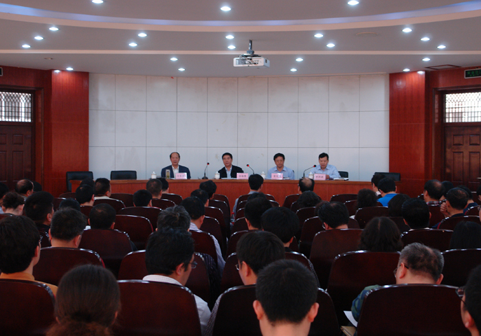 5月8日下午,我院召开党的群众路线教育实践活动“学习教育、听取意见”环节群众评价会议。省委第二十二督导组组长、郑州大学原常务副校长徐振鲁,督导组副组长、省委党史研究室副巡视员贺明洲,督导组成员、省教育厅学位管理与研究生教育处正处级调研员曹克舜、省农业厅人事处副处长陈学治、省交通运输厅人事处主任科员段志新、省司法厅政治部干部陈绍辉出席会议。院领导班子成员及干部、教职工、学生代表共106人参加。院长李四清主持会议。