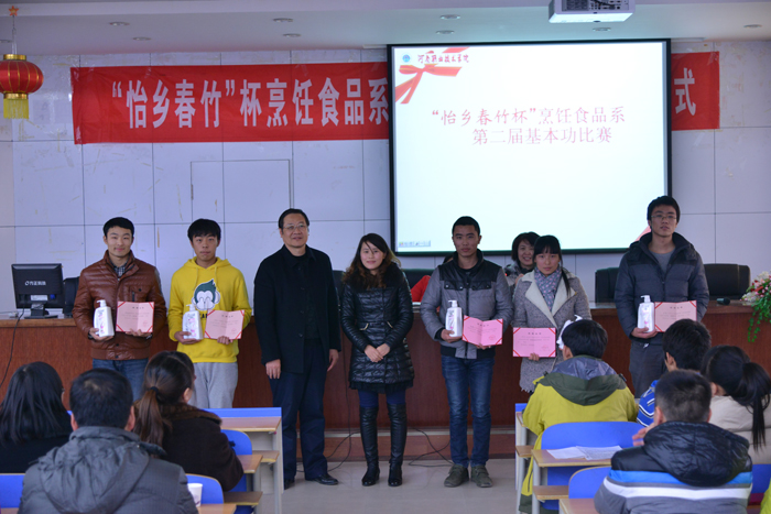 1月2日下午,烹饪食品系举行“怡乡春竹杯”第二届基本功技能比赛颁奖仪式。副院长彭志宏、上海怡乡春竹餐饮有限公司人力资源部经理王宁出席会议。该系全体教师、获奖选手及2012级学生共200余人参加。
