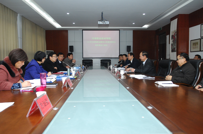 12月7日上午,省教育厅评估专家组组长洛阳师范学院党委副书记张宝明一行6人来我院对三年来《大学生思想政治教育工作测评体系》落实情况进行检查评估。学院党委书记王长钦、院长王爱群、副院长彭志宏及有关部门负责人参加汇报会。彭志宏副院长代表院党委向专家组作了专题汇报。经过听取汇报、查阅材料、实地考察和召开师生座谈会等环节,专家组对我院大学生思想政治教育工作给予了高度评价和一致肯定。
