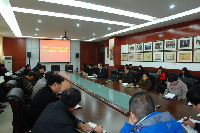 12月6日上午,我院召开党委中心组学习十八届三中全会精神会议。院领导王长钦、王爱群、彭志宏、肖珑和邵芙蓉,以及学院正处级领导干部共48人参加会议。会议学习了党的十八届三中全会主要精神。王长钦书记主持会议并作重要讲话。