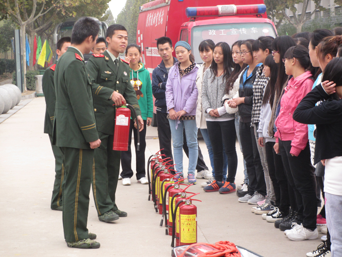 本次活动得到了院领导的高度重视,在各有关单位的积极配合下,保卫处认真组织,采用电子屏、广播、宣传条幅和展板等形式,积极向广大师生宣传消防安全知识。11月5日,郑东新区消防大队校园中队官兵受邀到我院为学生们现场讲解消防基本常识,亲自演示消防器材使用方法。河南省消防协会宣讲团朱德良教官于7日为我院350余名师生代表作“人人参与消防,共创平安和谐”消防知识专题讲座,结合火灾案例分析,介绍了火灾预防、逃生的方法。随后,与会人员分组使用灭火器对制定目标进行了灭火演练,达到对灭火器材基本操作的掌握。