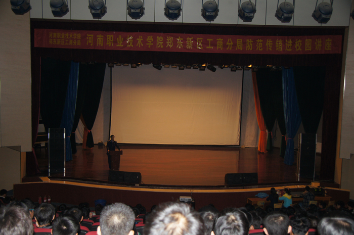 讲座中,郑州市工商行政管理局公平交易处副处长李进学结合真实案例,介绍了传销的由来、特征和危害及目前传销组织的现状和政府打击情况,提醒大家如何识别防范传销,教育引导学生进一步认清传销的危害,自觉远离传销。随后,与会人员一同观看了防范传销专题电影《黑梦》。同学们清晰地了解了直销和传销的区别及传销的违法犯罪性质,增强了自身对传销活动的辨别能力和防范意识。