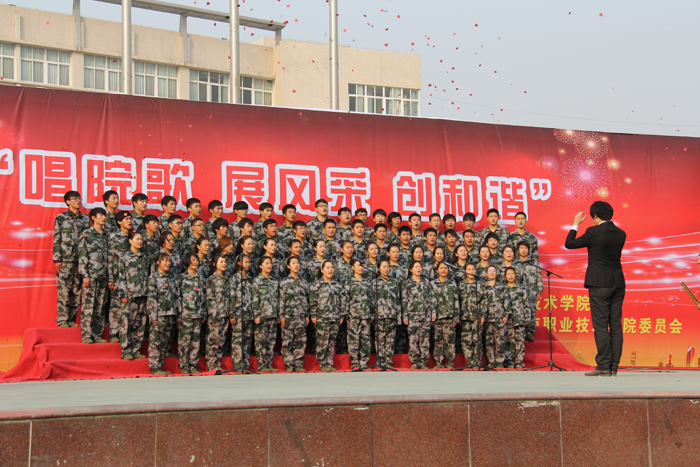 10月24日下午,由院团委组织的“唱院歌 展风采 创和谐”合唱比赛在院国旗台广场隆重举行。院长王爱群及各系(院)有关领导和老师一同观看比赛。
