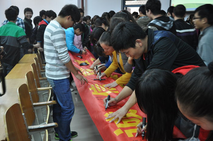 该系副主任陈燕萍就2014届毕业生校外实习工作进行了具体安排,并从校外实习的目的、校外实习的内容、校外实习的要求和诚信实习、诚信就业等方面作了讲解。活动现场宣读了诚信就业倡议书,同学们纷纷响应,在横幅上庄重签名,并表示将把诚信真正落实在行动上,实现自己的就业理想。