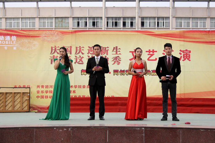 9月26日下午,院团委在元亨大道国旗台前成功举办了“庆国庆 迎新生”文艺汇演。院长王爱群,副院长彭志宏、占江、肖珑,院工会主席邵芙蓉出席活动现场,与六千多名2013级新生一同观看了这场精彩纷呈的演出。