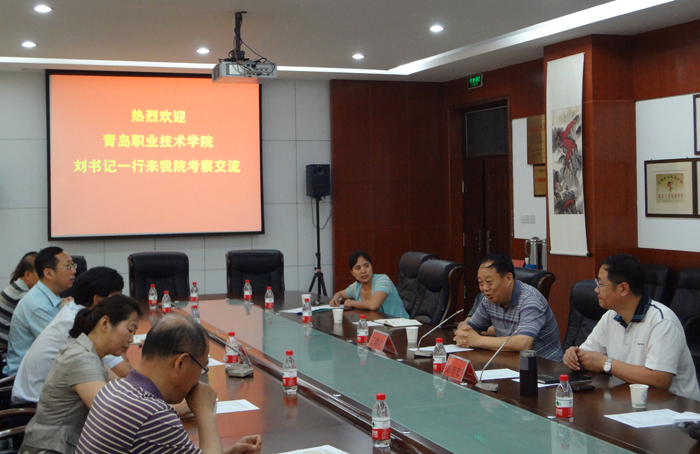 6月19日上午,青岛职业技术学院一行9人在党委副书记刘甲珉带领下,到我院考察交流。院长王爱群、副院长彭志宏出席交流会并讲话。党政办公室、财务处、校产管理处、继续教育学院等有关单位负责人参加。