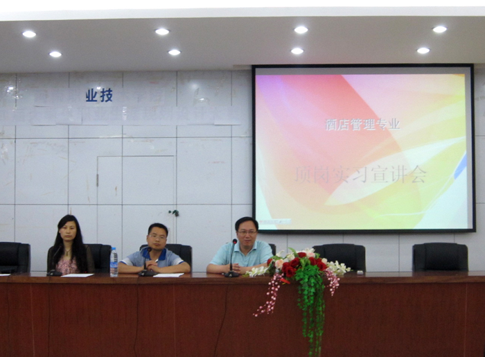 6月3日下午,旅游管理系举办2013年酒店管理专业顶岗实习企业宣讲活动。合作办学处和该系的领导及酒店管理专业100多名学生参加宣讲会。南昌凯莱大饭店、珠海庆华国际大酒店、福建荣誉酒店集团等10余家酒店企业分别进行了宣讲、遴选人才。