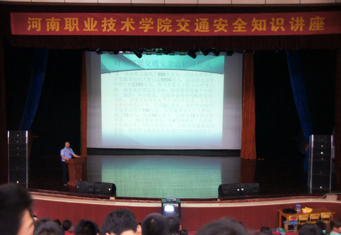 5月23日下午,由学生工作部、保卫处共同主办的交通安全知识讲座在学院音乐厅举行。郑州市公安局交巡警支队第六大队办公室主任崔战立受邀主讲。交巡警六大队和我院有关部门领导及600余名师生代表参加讲座。