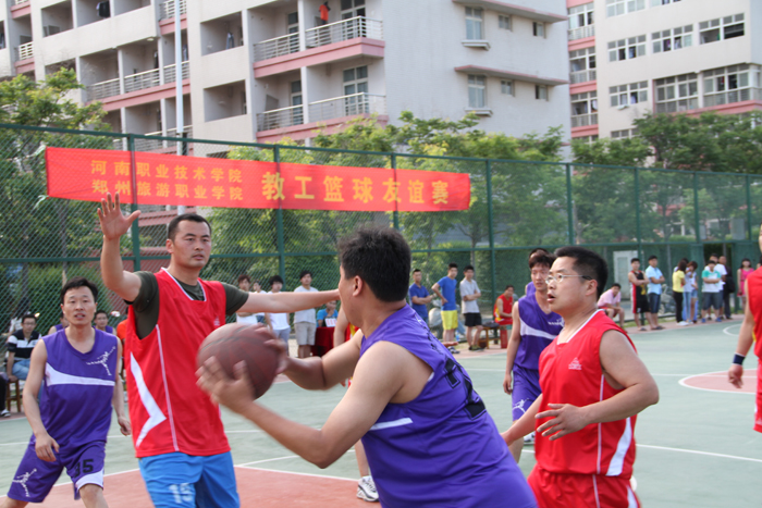继我院教工篮球队应邀到郑州旅游职业技术学院参加篮球友谊赛后,5月22日下午,郑州旅游职院工会主席石国河一行率教工篮球队来我院回访,并进行了友谊比赛。副院长彭志宏和院工会主席邵芙蓉到现场进行了观看和指导。